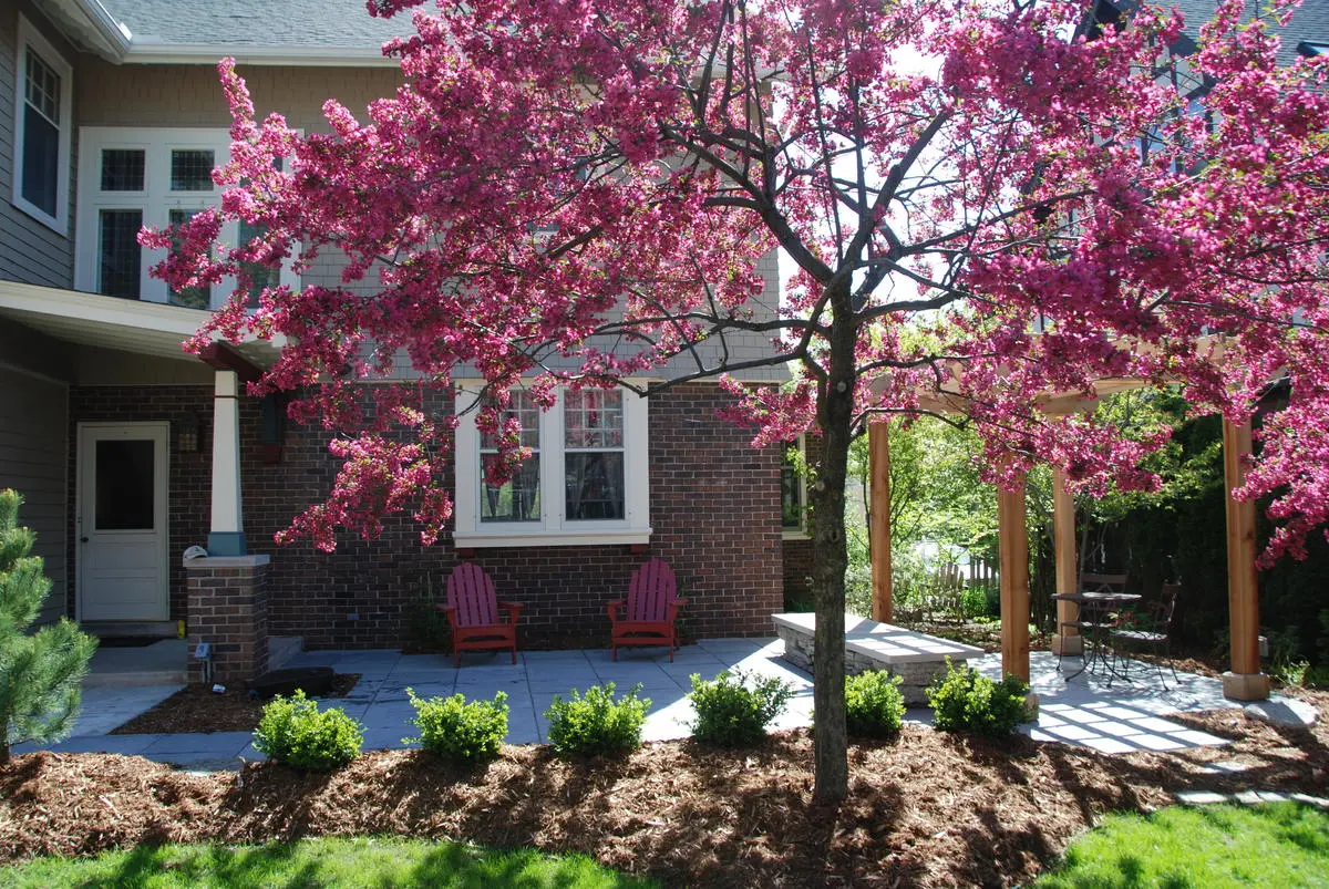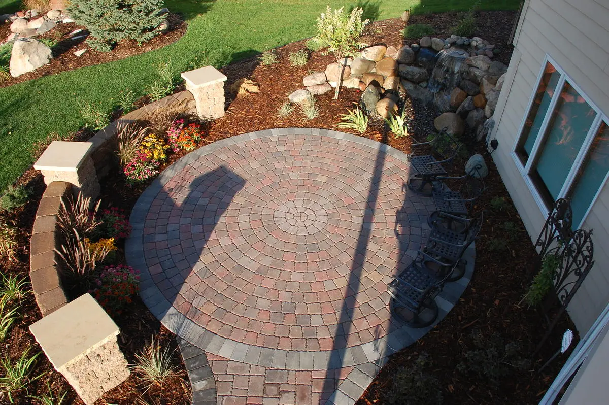 Take a look at this project from Champlin, MN where we were able to use all of our tools from lighting, patios, water gardens, plantings, firepit and more.